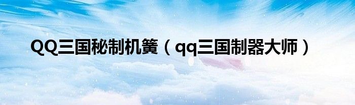 以上就是【QQ三国秘制机簧,qq三国制器大师】相关内容。