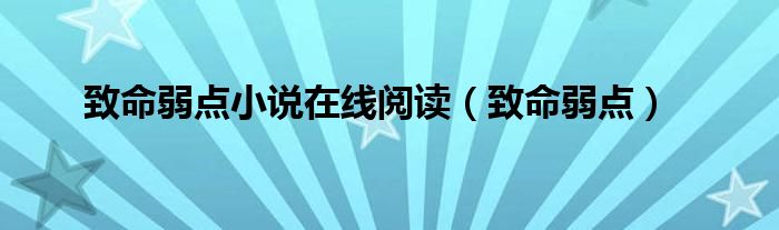 大家好,小问来为大家解答以上问题。致命弱点小说在线阅读,致命弱点这个很多人还不知道,现在让我们一起来看看吧!