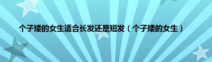 大家好,小问来为大家解答以上问题。个子矮的女生适合长发还是短发,个子矮的女生这个很多人还不知道,现在让我们一起来看看吧!