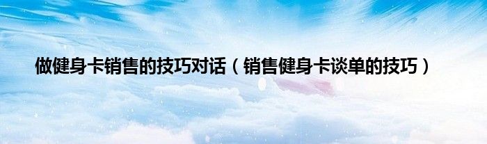 大家好,小问来为大家解答以上问题。做健身卡销售的技巧对话,销售健身卡谈单的技巧这个很多人还不知道,现在让我们一起来看看吧!