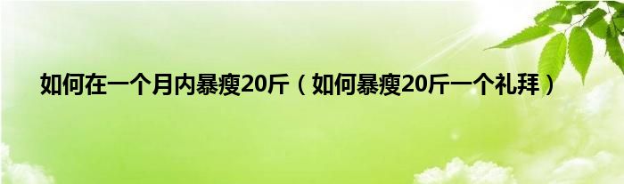 大家好,小问来为大家解答以上问题。如何在一个月内暴瘦20斤,如何暴瘦20斤一个礼拜这个很多人还不知道,现在让我们一起来看看吧!