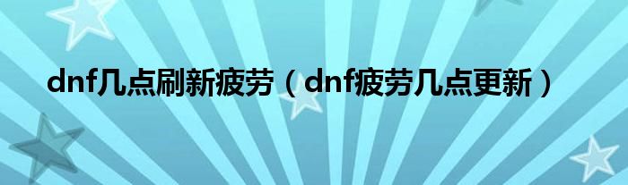 大家好,小问来为大家解答以上问题。dnf几点刷新疲劳,dnf疲劳几点更新这个很多人还不知道,现在让我们一起来看看吧!