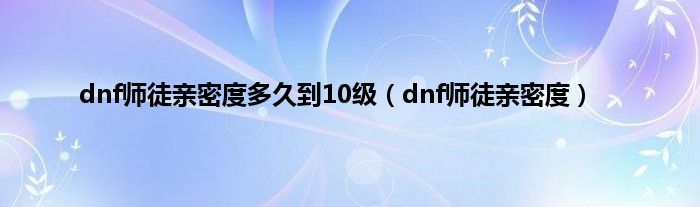 大家好,小问来为大家解答以上问题。dnf师徒亲密度多久到10级,dnf师徒亲密度这个很多人还不知道,现在让我们一起来看看吧!