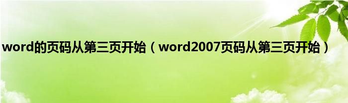 以上就是【word的页码从第三页开始,word2007页码从第三页开始】相关内容。