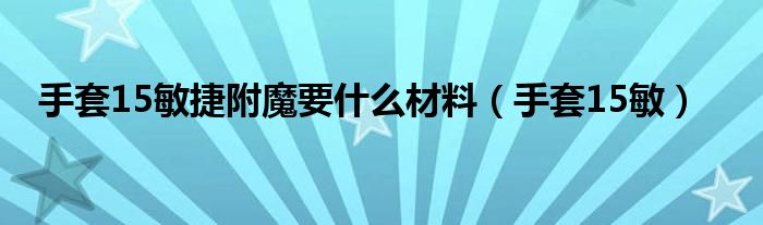 大家好,小问来为大家解答以上问题。手套15敏捷附魔要什么材料,手套15敏这个很多人还不知道,现在让我们一起来看看吧!