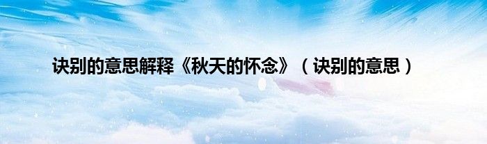 大家好,小问来为大家解答以上问题。诀别的意思解释《秋天的怀念》,诀别的意思这个很多人还不知道,现在让我们一起来看看吧!