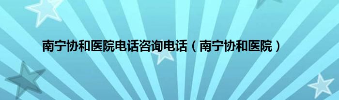 以上就是【南宁协和医院电话咨询电话,南宁协和医院】相关内容。