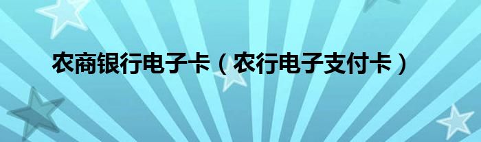大家好,小问来为大家解答以上问题。农商银行电子卡,农行电子支付卡这个很多人还不知道,现在让我们一起来看看吧!