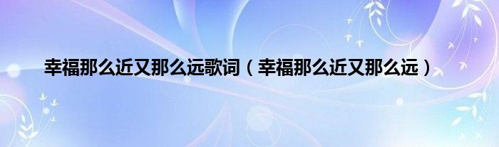 大家好,小问来为大家解答以上问题。幸福那么近又那么远歌词,幸福那么近又那么远这个很多人还不知道,现在让我们一起来看看吧!