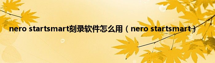 以上就是【nero startsmart刻录软件怎么用,nero startsmart】相关内容。