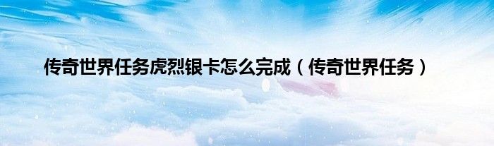 大家好,小问来为大家解答以上问题。传奇世界任务虎烈银卡怎么完成,传奇世界任务这个很多人还不知道,现在让我们一起来看看吧!