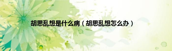 以上就是【胡思乱想是什么病,胡思乱想怎么办】相关内容。