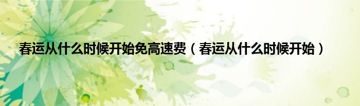 大家好,小问来为大家解答以上问题。春运从什么时候开始免高速费,春运从什么时候开始这个很多人还不知道,现在让我们一起来看看吧!