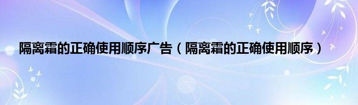 大家好,小问来为大家解答以上问题。隔离霜的正确使用顺序广告,隔离霜的正确使用顺序这个很多人还不知道,现在让我们一起来看看吧!