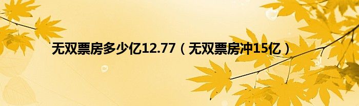 以上就是【无双票房多少亿12.77,无双票房冲15亿】相关内容。