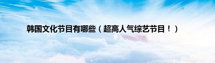 大家好,综合小编来为大家讲解下。韩国文化节目有哪些,超高人气综艺节目!这个很多人还不知道,现在让我们一起来看看吧!