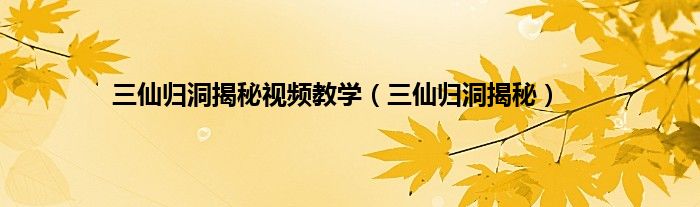 以上就是【三仙归洞揭秘视频教学,三仙归洞揭秘】相关内容。