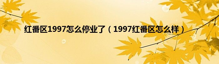 大家好,小问来为大家解答以上问题。红番区1997怎么停业了,1997红番区怎么样这个很多人还不知道,现在让我们一起来看看吧!