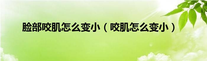 本文,脸部咬肌怎么变小,咬肌怎么变小到此就分享完毕,希望对大家有所帮助。