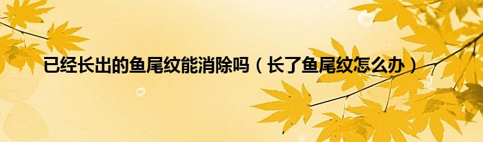 大家好,已经长出的鱼尾纹能消除吗,长了鱼尾纹怎么办很多人还不知道,现在让我们一起来看看吧!