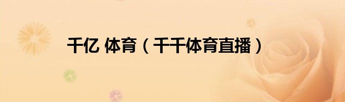 千亿 体育(千千体育直播)