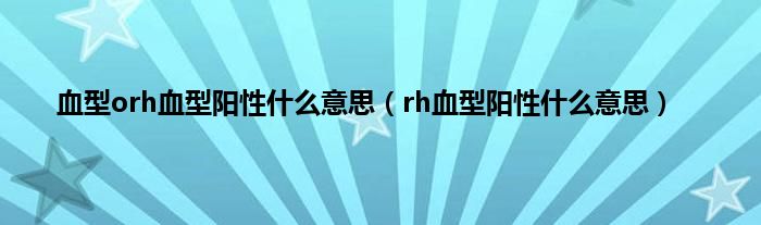 本文,血型orh血型阳性什么意思,rh血型阳性什么意思到此就分享完毕,希望对大家有所帮助。
