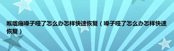 本文,喉咙痛嗓子哑了怎么办怎样快速恢复,嗓子哑了怎么办怎样快速恢复到此就分享完毕,希望对大家有所帮助。