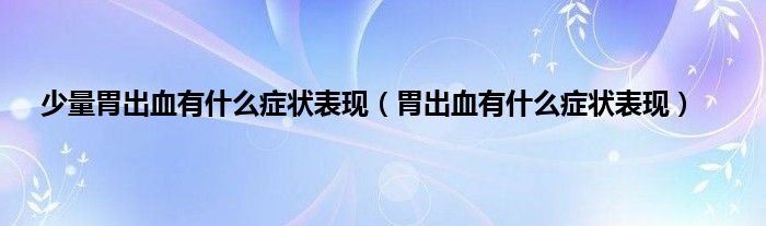 本文,少量胃出血有什么症状表现,胃出血有什么症状表现到此就分享完毕,希望对大家有所帮助。