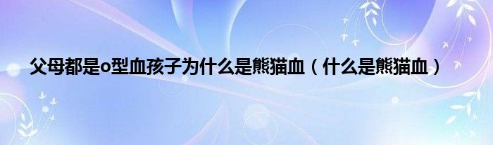 以上就是【父母都是o型血孩子为什么是熊猫血,什么是熊猫血】相关内容。