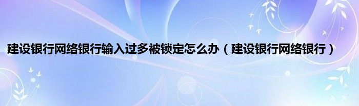 大家好,小问来为大家解答以上问题。建设银行网络银行输入过多被锁定怎么办,建设银行网络银行这个很多人还不知道,现在让我们一起来看看吧!