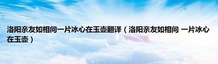 大家好,小问来为大家解答以上问题。洛阳亲友如相问一片冰心在玉壶翻译,洛阳亲友如相问 一片冰心在玉壶这个很多人还不知道,现在让我们一起来看看吧!