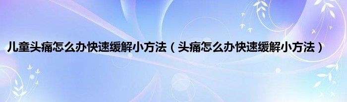 本文,儿童头痛怎么办快速缓解小方法,头痛怎么办快速缓解小方法到此就分享完毕,希望对大家有所帮助。