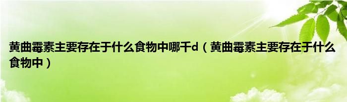 大家好,黄曲霉素主要存在于什么食物中哪千d,黄曲霉素主要存在于什么食物中很多人还不知道,现在让我们一起来看看吧!
