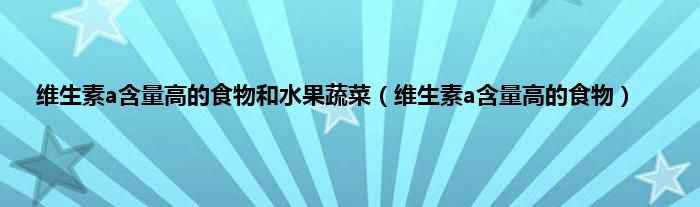 大家好,维生素a含量高的食物和水果蔬菜,维生素a含量高的食物很多人还不知道,现在让我们一起来看看吧!