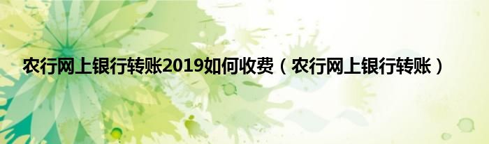 以上就是【农行网上银行转账2019如何收费,农行网上银行转账】相关内容。