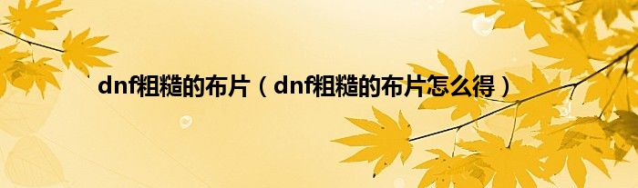 以上就是【dnf粗糙的布片,dnf粗糙的布片怎么得】相关内容。