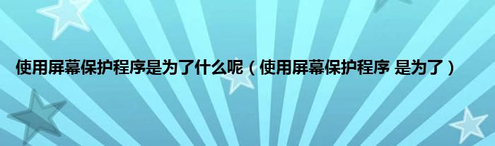以上就是【使用屏幕保护程序是为了什么呢,使用屏幕保护程序 是为了】相关内容。