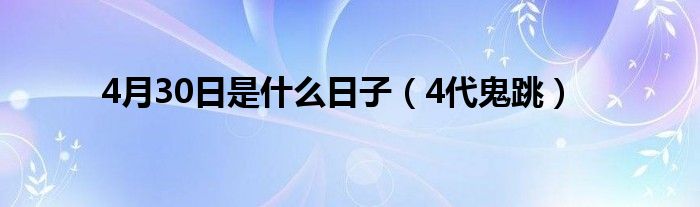 大家好,小问来为大家解答以上问题。4月30日是什么日子,4代鬼跳这个很多人还不知道,现在让我们一起来看看吧!