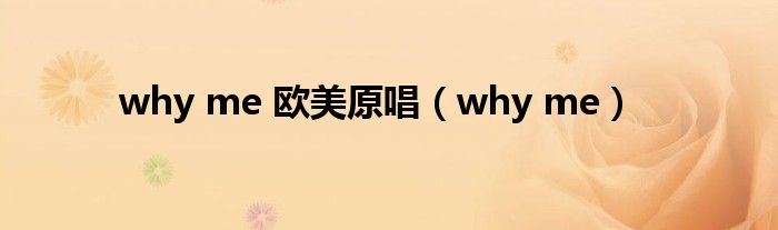 大家好,小问来为大家解答以上问题。why me 欧美原唱,why me这个很多人还不知道,现在让我们一起来看看吧!