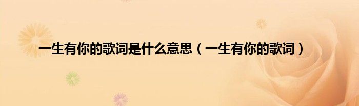 以上就是【一生有你的歌词是什么意思,一生有你的歌词】相关内容。