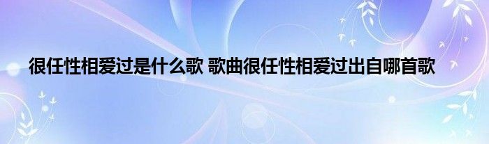 很任性相爱过是什么歌 歌曲很任性相爱过出自哪首歌