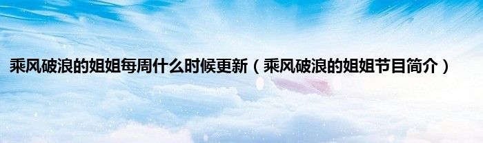 大家好,乘风破浪的姐姐每周什么时候更新,乘风破浪的姐姐节目简介很多人还不知道,现在让我们一起来看看吧!