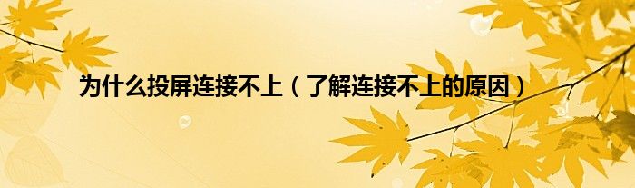 为什么投屏连接不上(了解连接不上的原因)