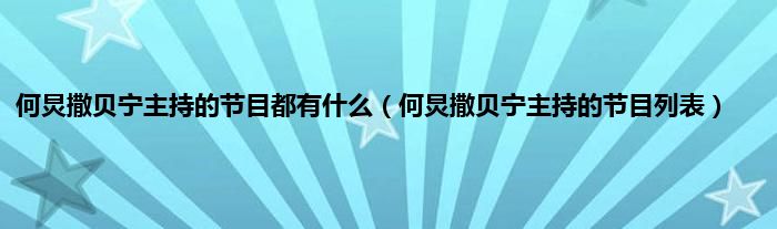 本文,何炅撒贝宁主持的节目都有什么,何炅撒贝宁主持的节目列表到此就分享完毕,希望对大家有所帮助。