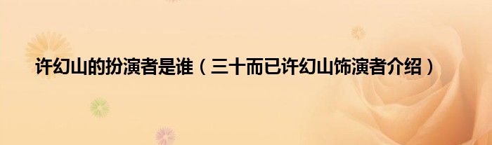 大家好,许幻山的扮演者是谁,三十而已许幻山饰演者介绍很多人还不知道,现在让我们一起来看看吧!
