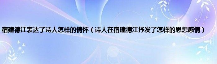 大家好,宿建德江表达了诗人怎样的情怀,诗人在宿建德江抒发了怎样的思想感情很多人还不知道,现在让我们一起来看看吧!