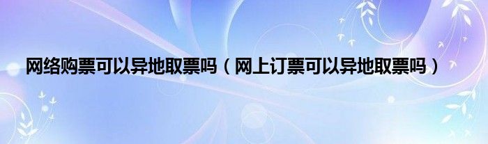 本文,网络购票可以异地取票吗,网上订票可以异地取票吗到此就分享完毕,希望对大家有所帮助。