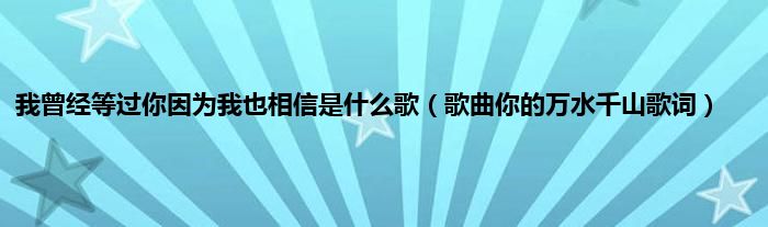 大家好,我曾经等过你因为我也相信是什么歌,歌曲你的万水千山歌词很多人还不知道,现在让我们一起来看看吧!