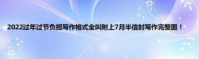 大家好,2022过年过节负担写作格式全叫附上7月半信封写作完整图!很多人还不知道,现在让我们一起来看看吧!