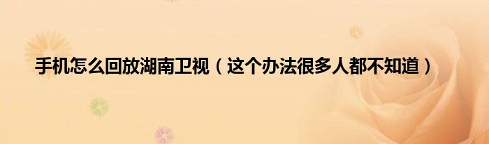 本文,手机怎么回放湖南卫视,这个办法很多人都不知道到此就分享完毕,希望对大家有所帮助。
